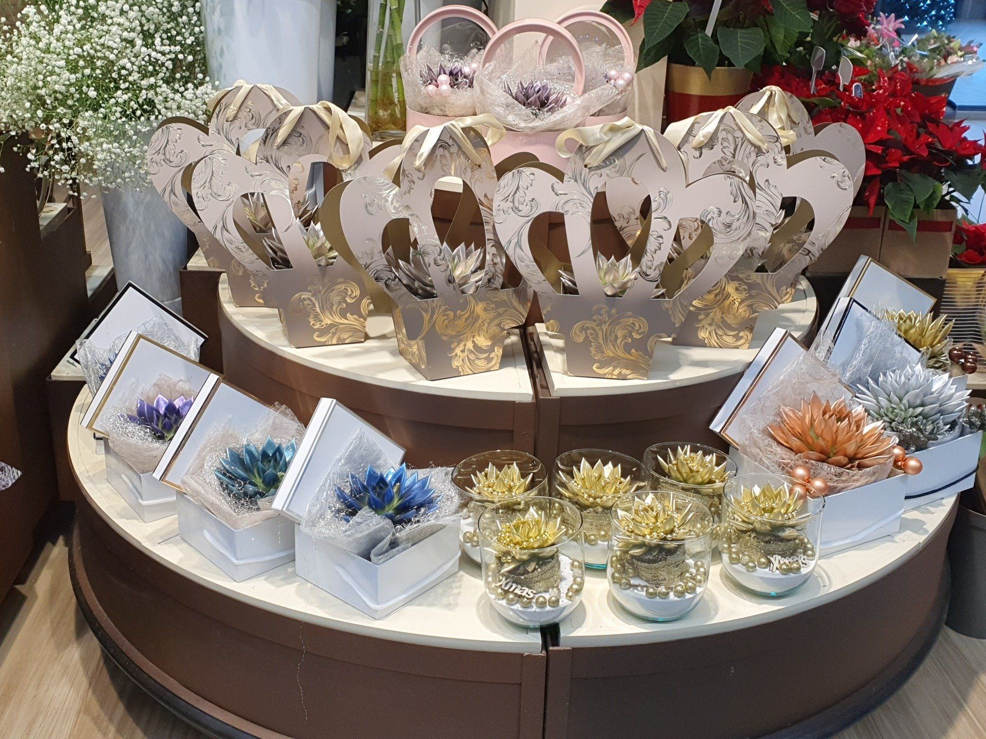 La boutique est située dans la galerie marchande d'un supermarché où vous trouverez un univers floral accompagné d'une ambiance chaleureuse et conviviale. Nos fleuristes vous conseillent pour la conception de compositions florales sur mesure.